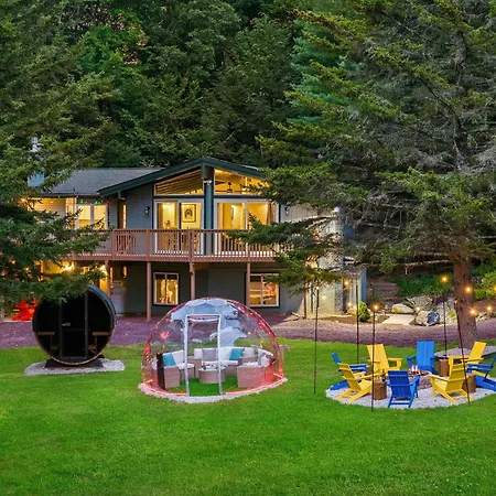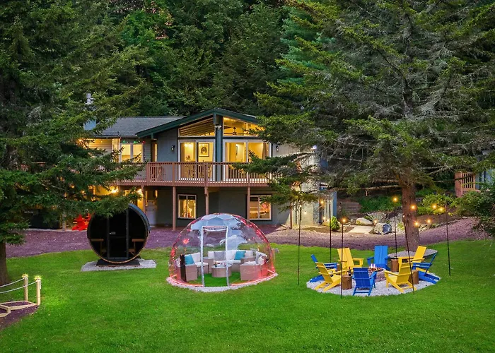 Encapsulated in nature's embrace, The Lazy Bear Cabin Dome Hot Tub Sauna & More Albrightsville offers a serene retreat that balances rustic charm with modern convenience. Nestled amidst lush woodlands, this tranquil getaway is tailored for both adventure seekers and those in search of pure relaxation. The inviting cabin features a design that harmonizes seamlessly with its surroundings, ensuring an unforgettable experience.